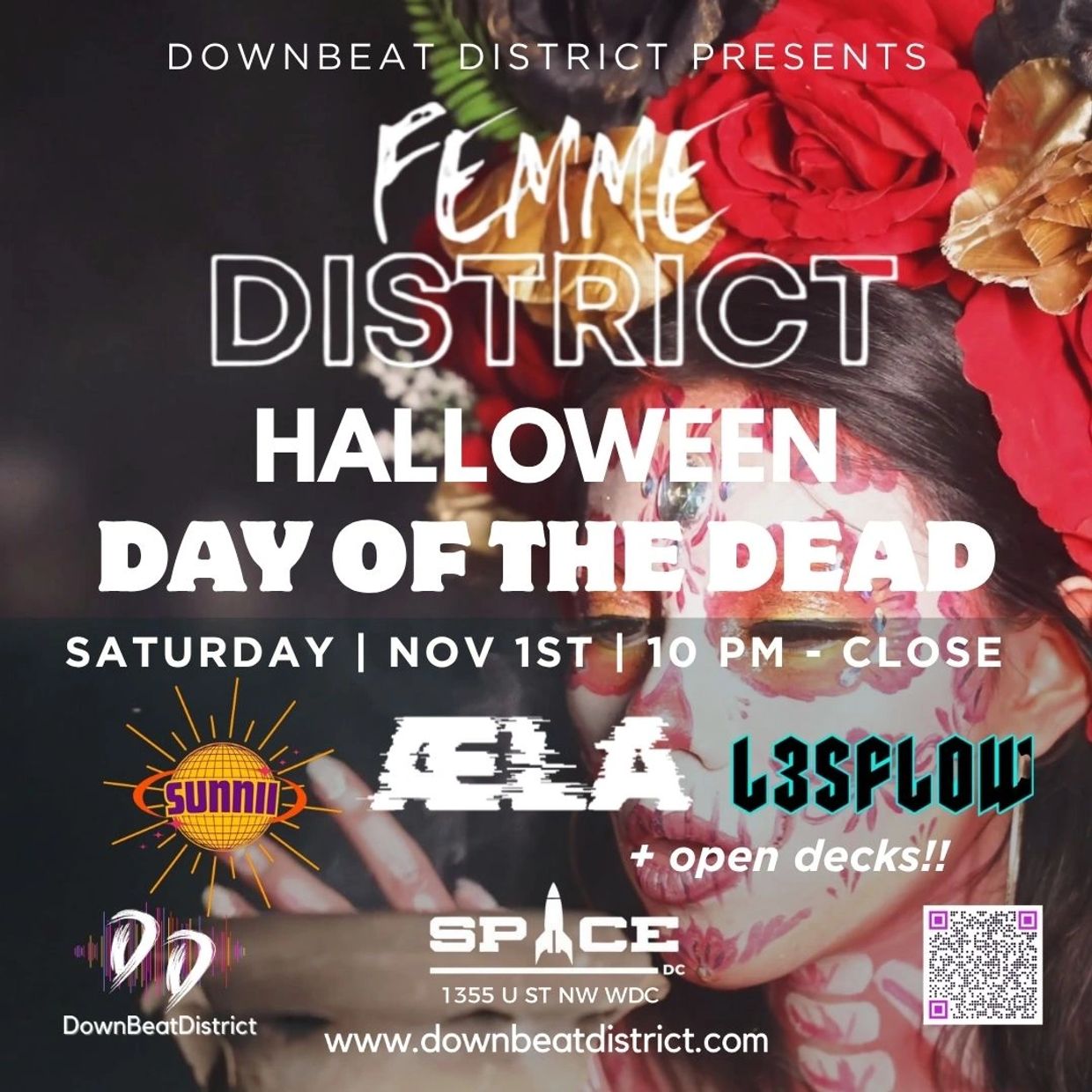 Get ready for Halloween Day of the Dead party Femme District style at Space DC Club on U Street! You can't beat this vibrant neighborhood and we are ready to throw down some good house, tech house, and more! Maybe trance? Come and find out!